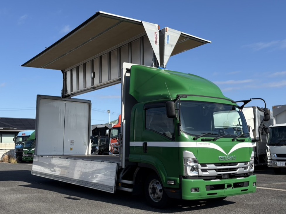 | セールスポイント | R3 いすゞフォワード 6.2ワイドウイング リーフサス 積載2800kg 車検満了R8.8.16 | -- | -- |